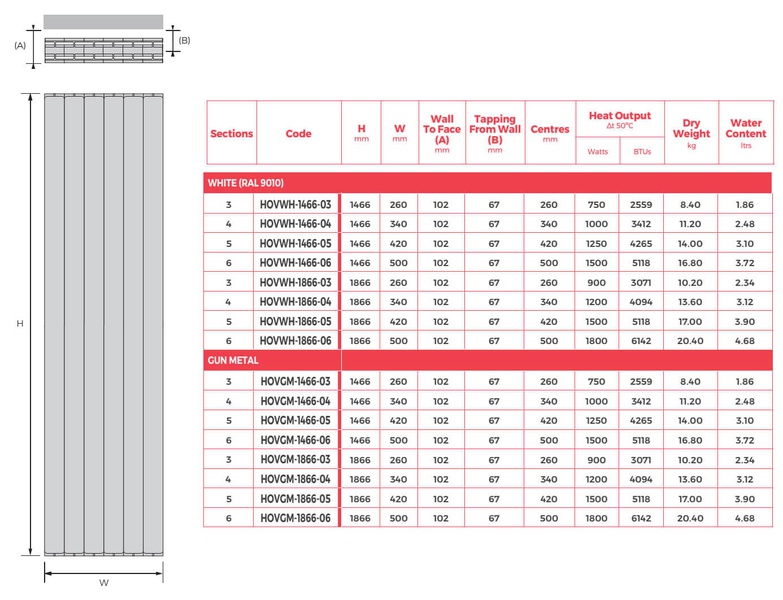 MHS Rads 2 Rails Holborn Vertical Gun Metal Radiator 1866x260mm HOVGM-1866-03 - HOVGM-1866-03